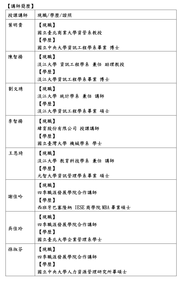 上課地點:台北市中正區濟南路一段 321 號(國立臺北商業大學 - 台北校區)